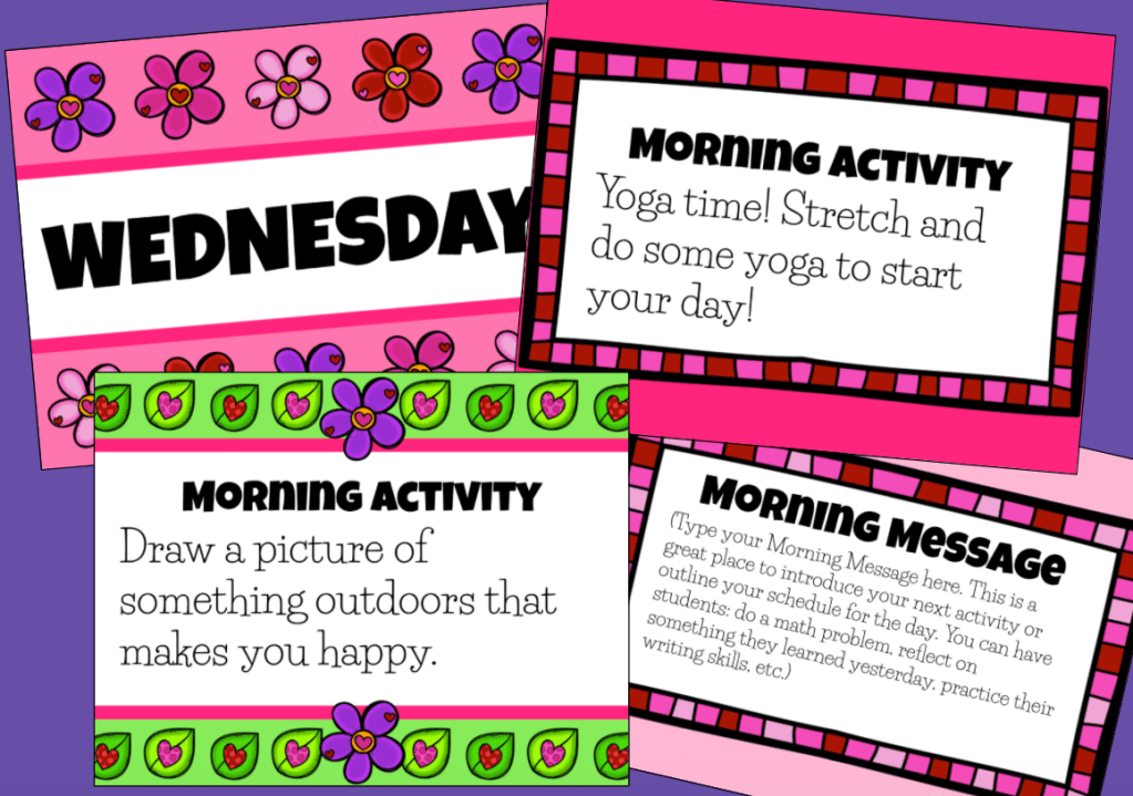 We’ll be looking at (1) February Morning Meeting Slides and (2) 2021 February Holiday Morning Meeting Ideas! You can check out my slides for the entire month of February here.