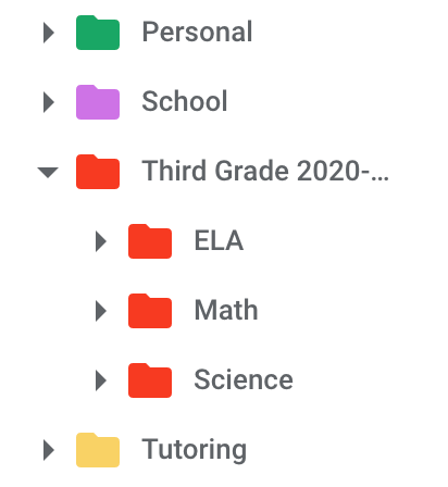 For your “Third Grade 2020-21” folder, you might choose to select the color red, and then, you’d want to change every sub-folder to red as well. In this example, I would make my Math, ELA, and Science sub-folders all red.
