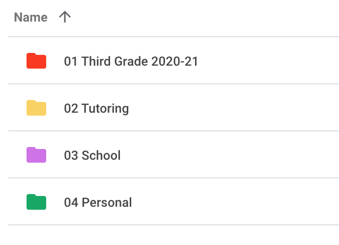 For example, you can rename your “Third Grade 2020-21” folder to say “01 Third Grade 2020-21.” Now, after you have renamed your folder, it’ll appear at the very top of your Google Drive.