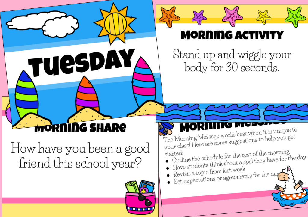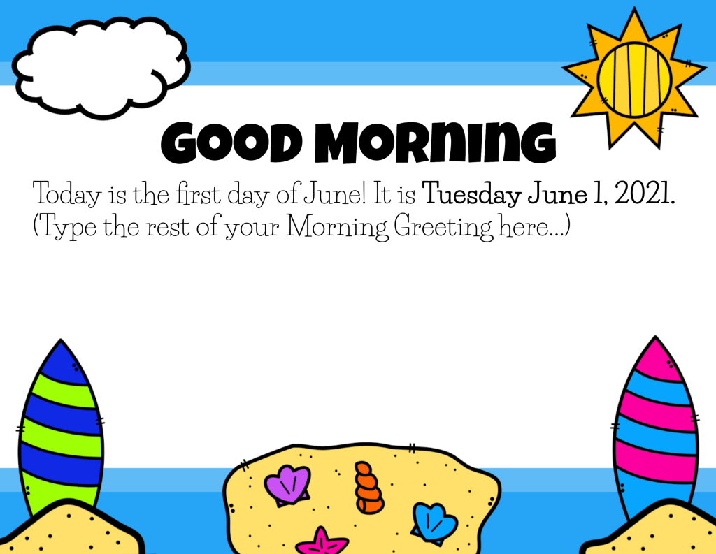 I’ll be sharing examples of (1) Morning Greetings, (2) Morning Shares, (3) Morning Activities, and (4) Morning Messages, all centered around the month of June and the end of the school year.